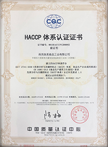南充佳美于2008年按GB/T 27341-2009標(biāo)準(zhǔn)建立HACCP體系,同時(shí)取得HACCP 體系認(rèn)證證書(shū)